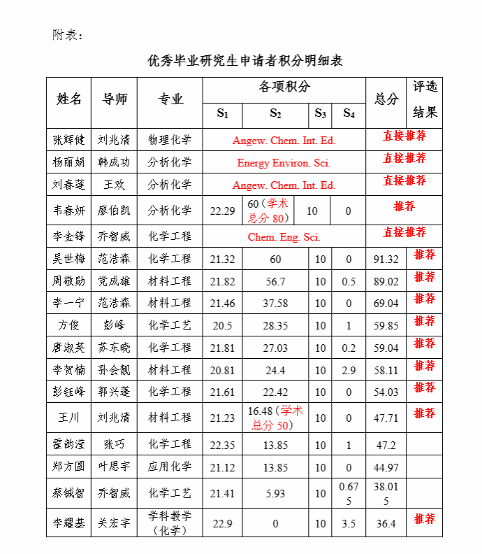 根据《色漫 关于评选2025年优秀毕业研究生的通知》的要求,经个人申请,色漫 评审,拟推荐2022级物理化学专业张辉健等14位研究生为2025年色漫 优秀毕业研究生。现将评审结果予以公示,详情请见附表所示。