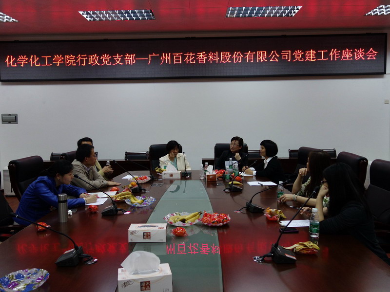 为深入学习贯彻党的十八大精神,行政支部今年开展了“寻访优秀校友、研讨管理经验”的党日活动。作为党日活动方案的内容之一,2013年3月15日下午,行政党支部邀请了两名优秀校友回校座谈,交流党建工作和管理工作经验。她们是广州百花香料股份有限公司党委副书记丘海澜和工程师胡桂芳。