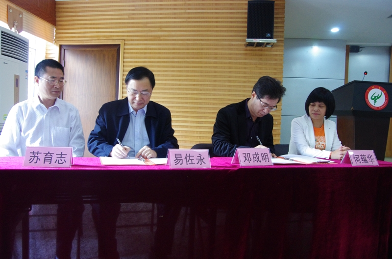 代表与学校易佐永书记和邓成明副校长签订了2014年就业目标责任书。