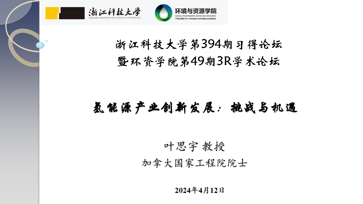 二、我院黄埔氢能源创新中心主任叶思宇院士团队受邀访问浙江科技大学并作浙江科技大学第394期习得论坛暨环资色漫