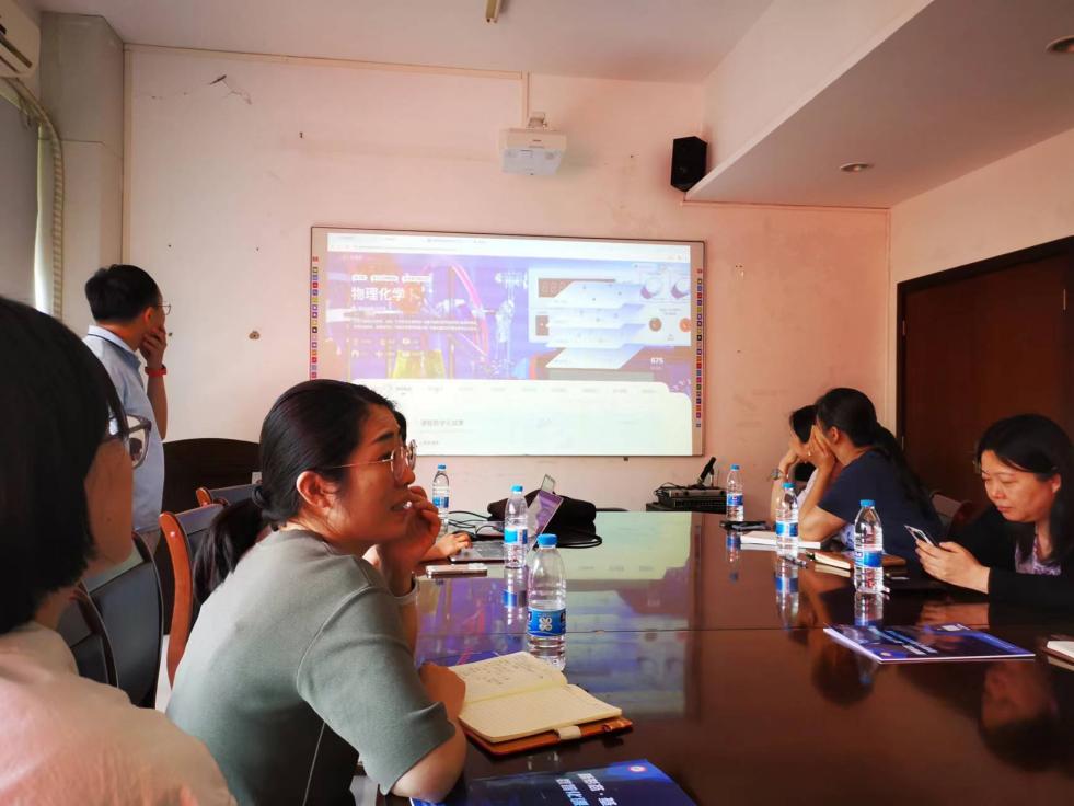 听完智慧树专家的讲解,各位核心课程教师对知识图谱表现出了强烈的兴趣。结合已上线的《物理化学》知识图谱,了解到知识图谱有关的资料类型、知识点、教学实施等内容。同时就知识图谱的制作、项目收费以及知识图谱后期使用和维护等问题与专家展开了深入地交流。