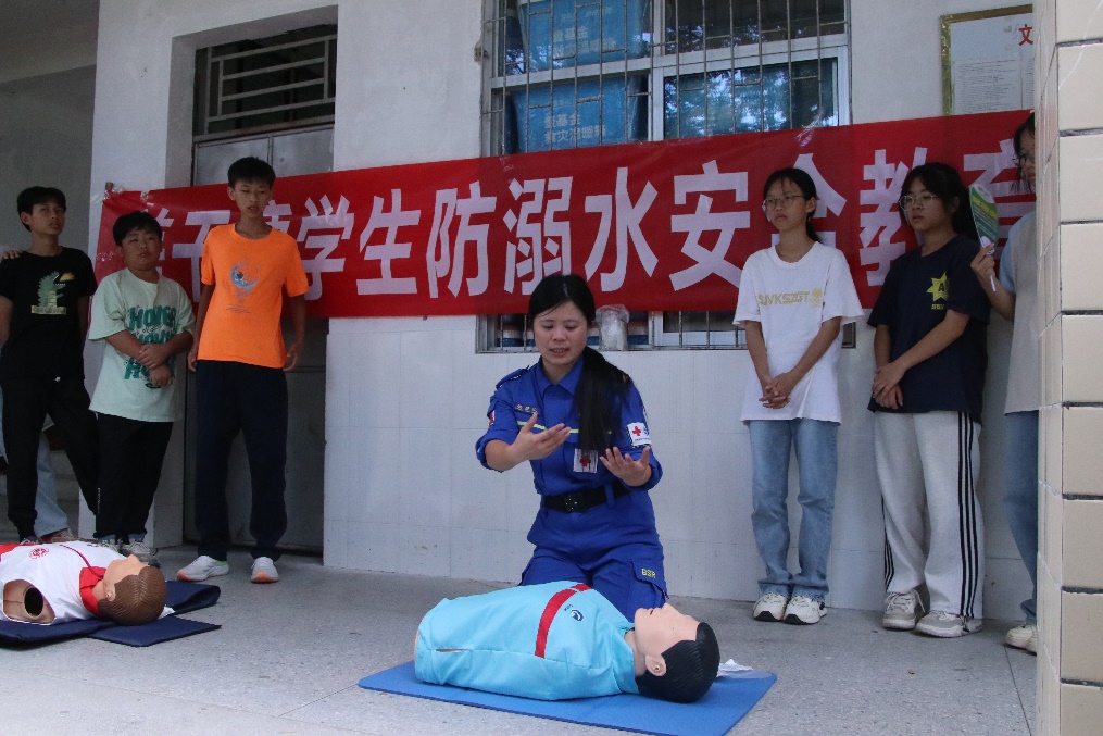 (图为突击队协同蓝天救援协会为乡村儿童普及防溺水知识)