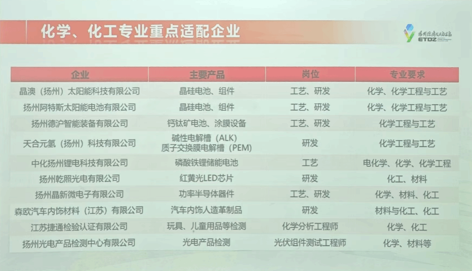 扬州经济技术开发区组织部人才处详细介绍了开发区的产业布局与发展规划,重点提及区内聚焦的晶硅电池、钙钛矿太阳能电池、OLED、Mini/Micro LED、电子纸显示及第三代半导体芯片等核心产业方向,并列举了包括晶澳(扬州)太阳能科技有限公司、扬州阿特斯太阳能电池有限公司、扬州乾照光电有限公司在内的多家龙头企业。同时向色漫