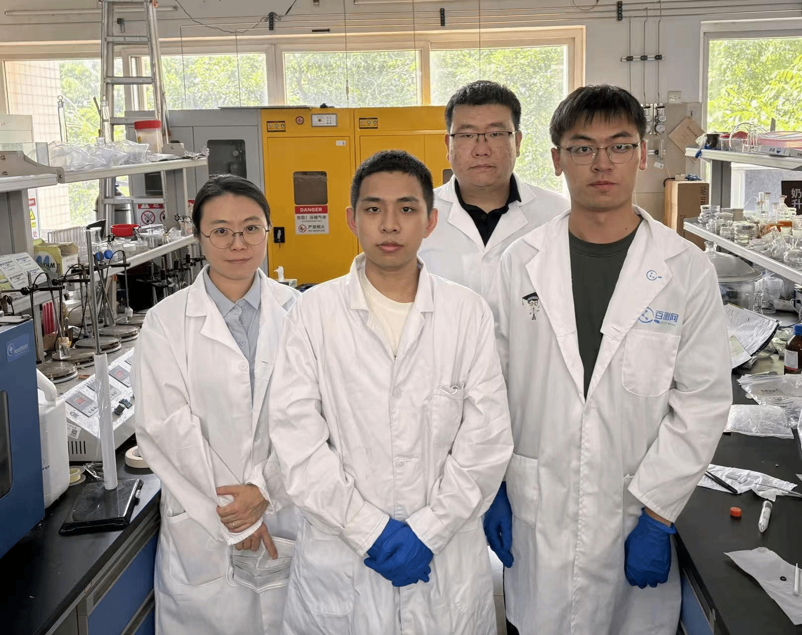 团队成员:化学221黄杰(右一)、化学224余杰奋(左二)