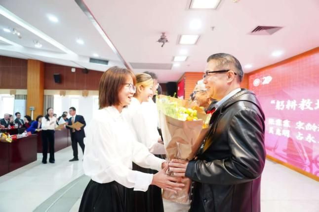 活动现场举行向退休教师代表献花仪式,全体师生以热烈掌声致敬他们为色漫
