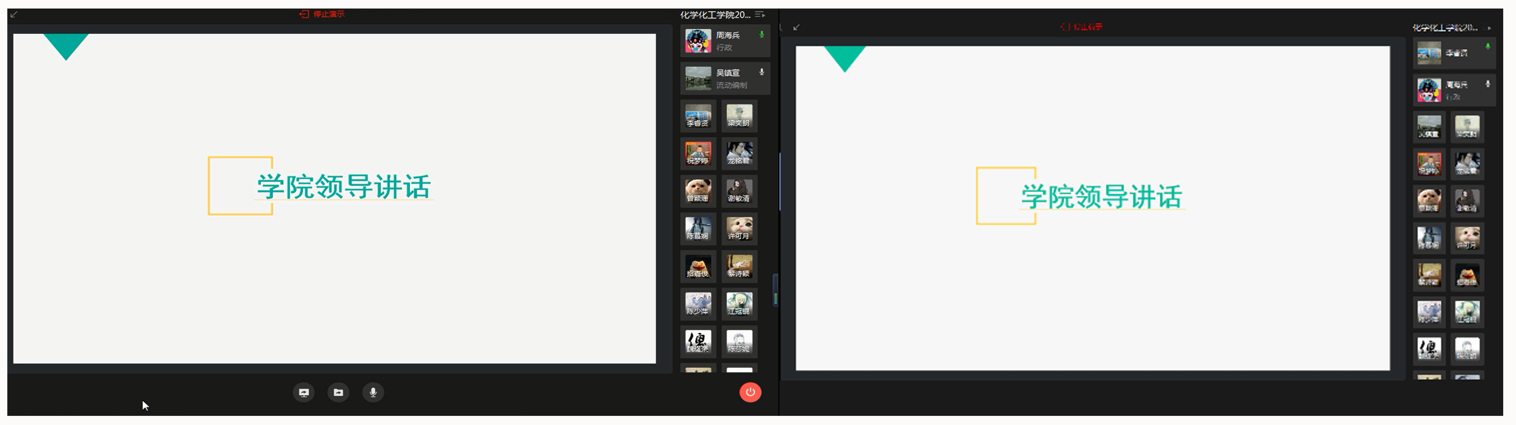 党委周海兵书记、李睿贤副书记和学工办辅导员、心理工作兼职辅导员通过企业微信与2020届全体毕业生进行深切交流,会议由辅导员吴镇宣老师主持。