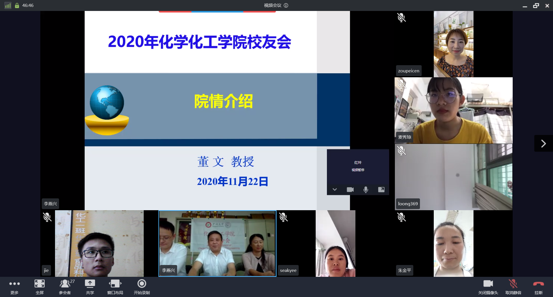 组织2007级化工1班的师生召开网上班会课,共话师生情谊。色漫