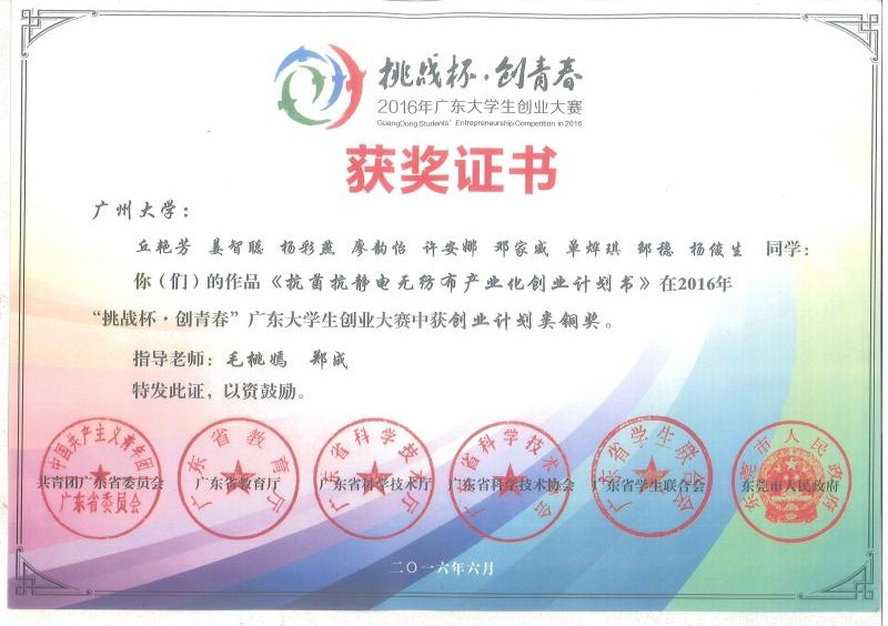 | 第九届“挑战杯”大学生课外学术科技作品竞赛广东省赛