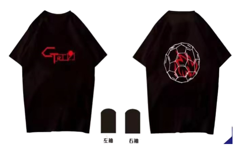 班服的款式是短袖T恤,底色选取为纯黑,简单大方,寓意是大学对于刚入学的我们而言虽然充满未知与迷茫,但是我们相信只要充满热情、不忘初心,就可以以热情的“红”在未知与迷茫的“黑”中留下最显眼的痕迹。