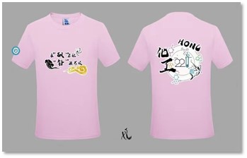 班服前面印着扬帆2022班的口号“乘砜启航,钋浪万顷”,后面为班级成员自己设计的logo。logo图案由两个苯环和一个试管组成,旁边还有笔力遒劲的“化工”字样,正好组成“化工221”五个字。在logo的右下角还有一条奋力一跃的金枪鱼,借《伊索寓言》中的金枪鱼意象警醒着同学们在面临困境时也不要忘记保持冷静,否则就容易因冲动而导致失败。班服颜色女生为浅粉色底,男生为黑色底。
