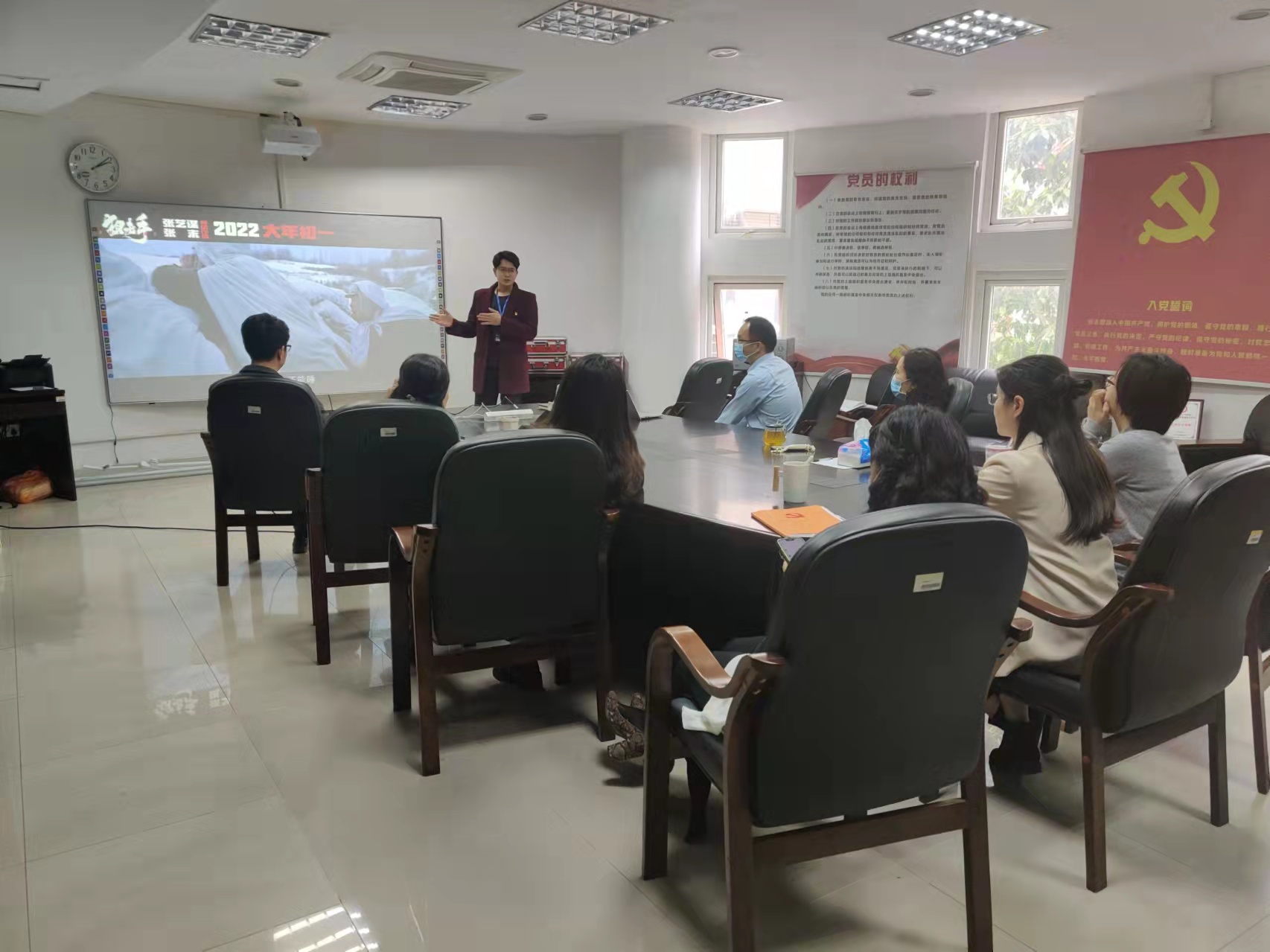 行政党支部组织党员在党员教育活动室观看了《狙击手》,该片讲述了中国人民志愿军在敌我军备力量悬殊的境地下,与美军精英狙击小队展开殊死较量的故事。通过一幅幅直观的画面,回顾了抗美援朝的战争场景,感悟了先辈们面对艰难困苦表现出的英勇顽强的作风和伟大的抗美援朝精神。大家观后还分享了观感体会。