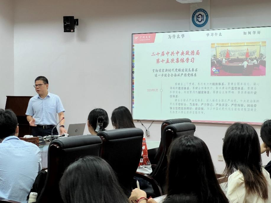 两位书记从“为什么学”、“学习什么”、“如何学好”三个方面带领学生党员们学习《中国共产党纪律处分条例》。在讲授党课的过程中,两位书记结合典型的案例解读各项党纪处分规定,让同学们更深入地学习理解《中国共产党纪律处分条例》内容,同时深刻地认识到开展党纪学习教育的重要意义。