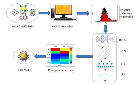 该工作中,研究者以甲醇和金属-有机骨架(MOF)分别作为工作流体和吸附剂,采用先进的机器学习辅助蒙特卡洛模拟的高通量筛选方法研究了MOF吸附热泵的性能,指出影响吸附热泵的主要MOF结构/能量描述符;机器学习合理预测其循环性能系数;最后,针对三种不同的应用(热泵,制冷和制冰)给定了一系列最优MOF吸附剂,为MOF吸附式热泵的开发指明了道路。色漫